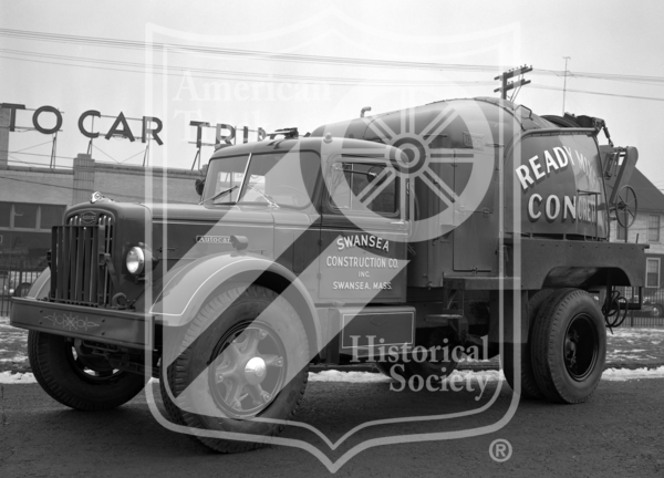 Caption: Model C90D, straight truck with driver cab and Jaeger cement mixer body. Swansea Construction Co. Inc. Swansea, MA. January 31, 1952.